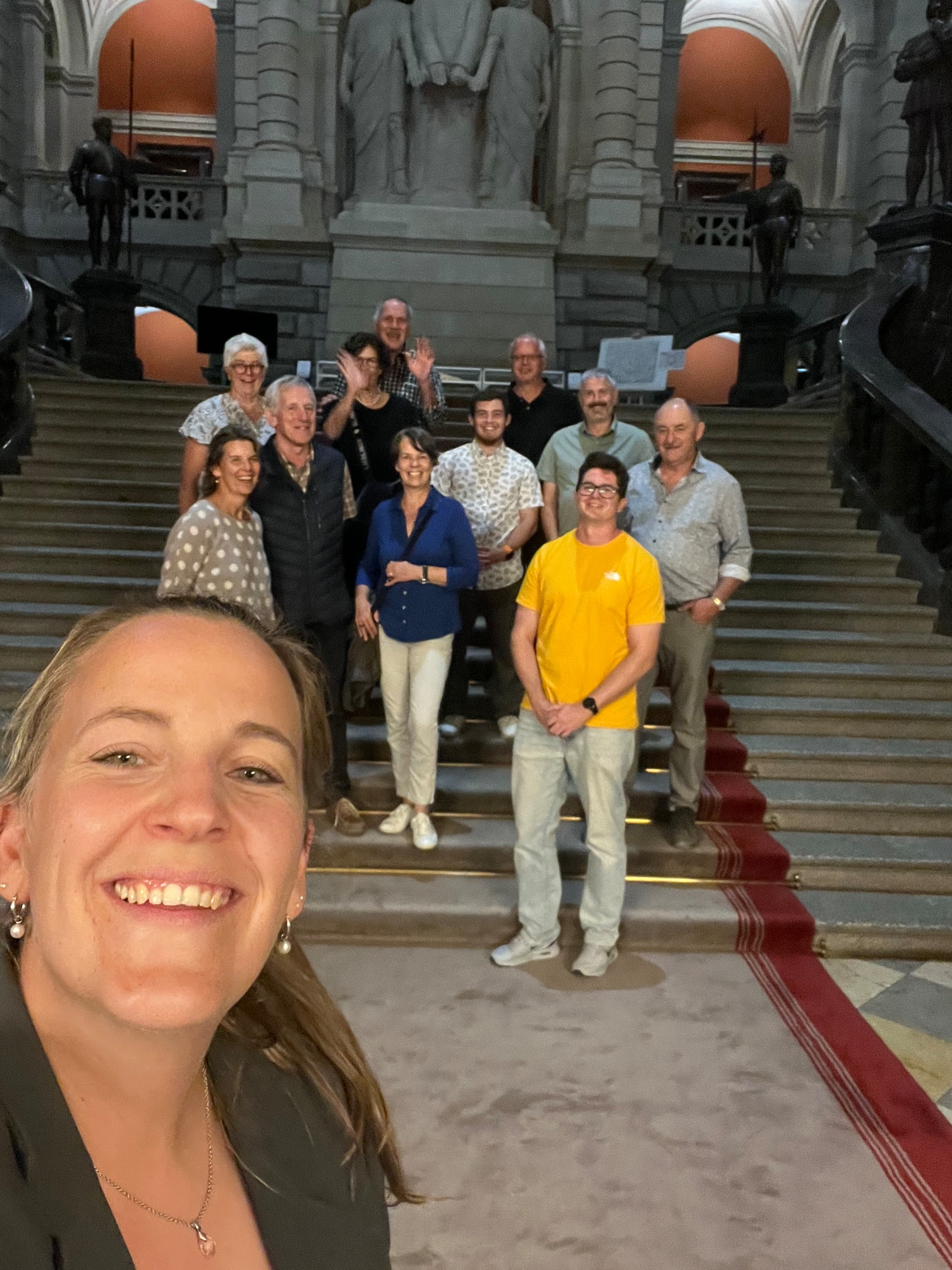 In der Herbstsession 2025 besuchte die SVP Wichtrach mit politisch Interessierten aus Wichtrach das Bundeshaus und wir liessen uns durch Nationalrätin Katja Riem durch die Räumlichkeiten führen. An diesem Donnerstag mit sommerlichen Temperaturen trafen wir uns auf der Bundesterrasse und genossen vor Eintritt den Ausblick auf die Berner Alpen.